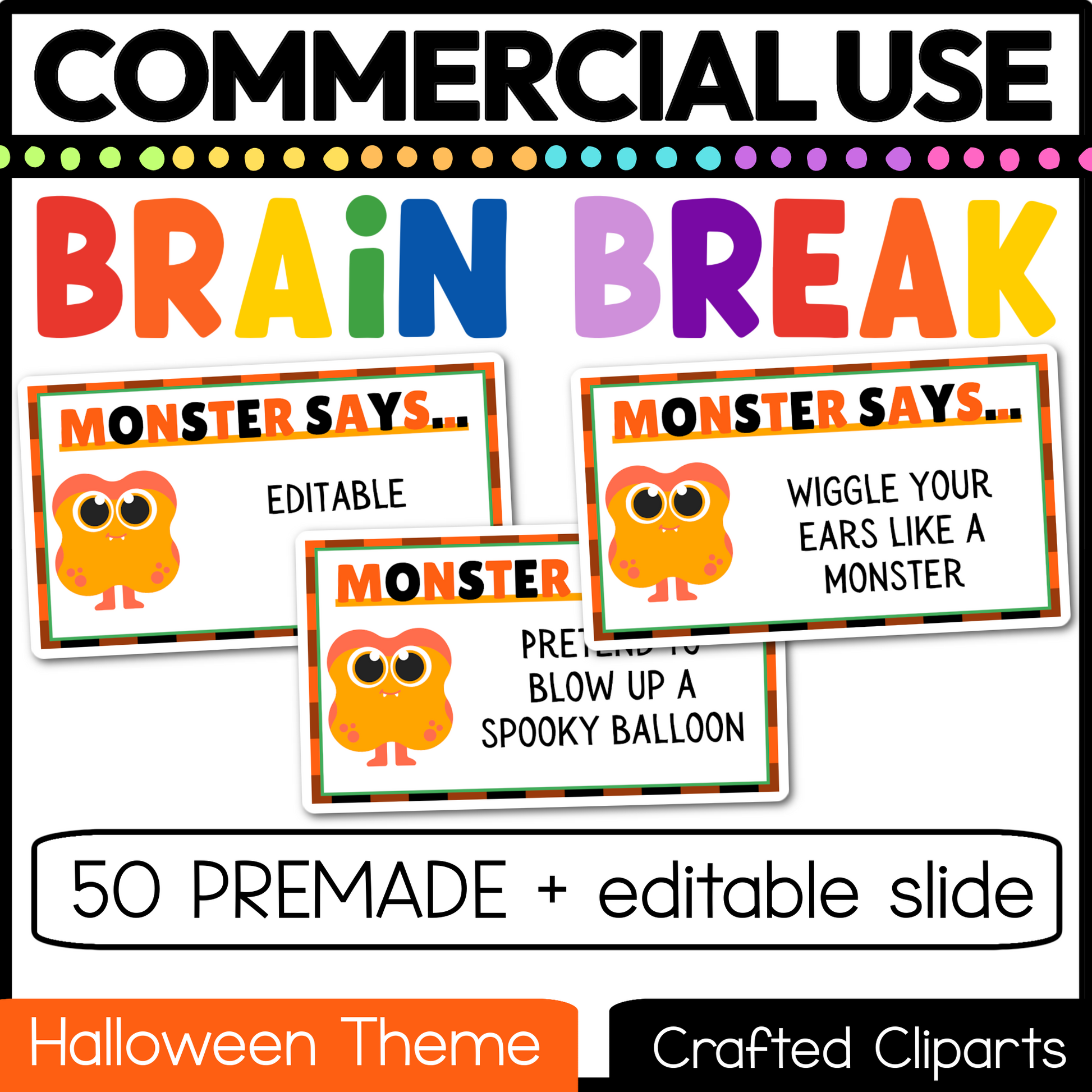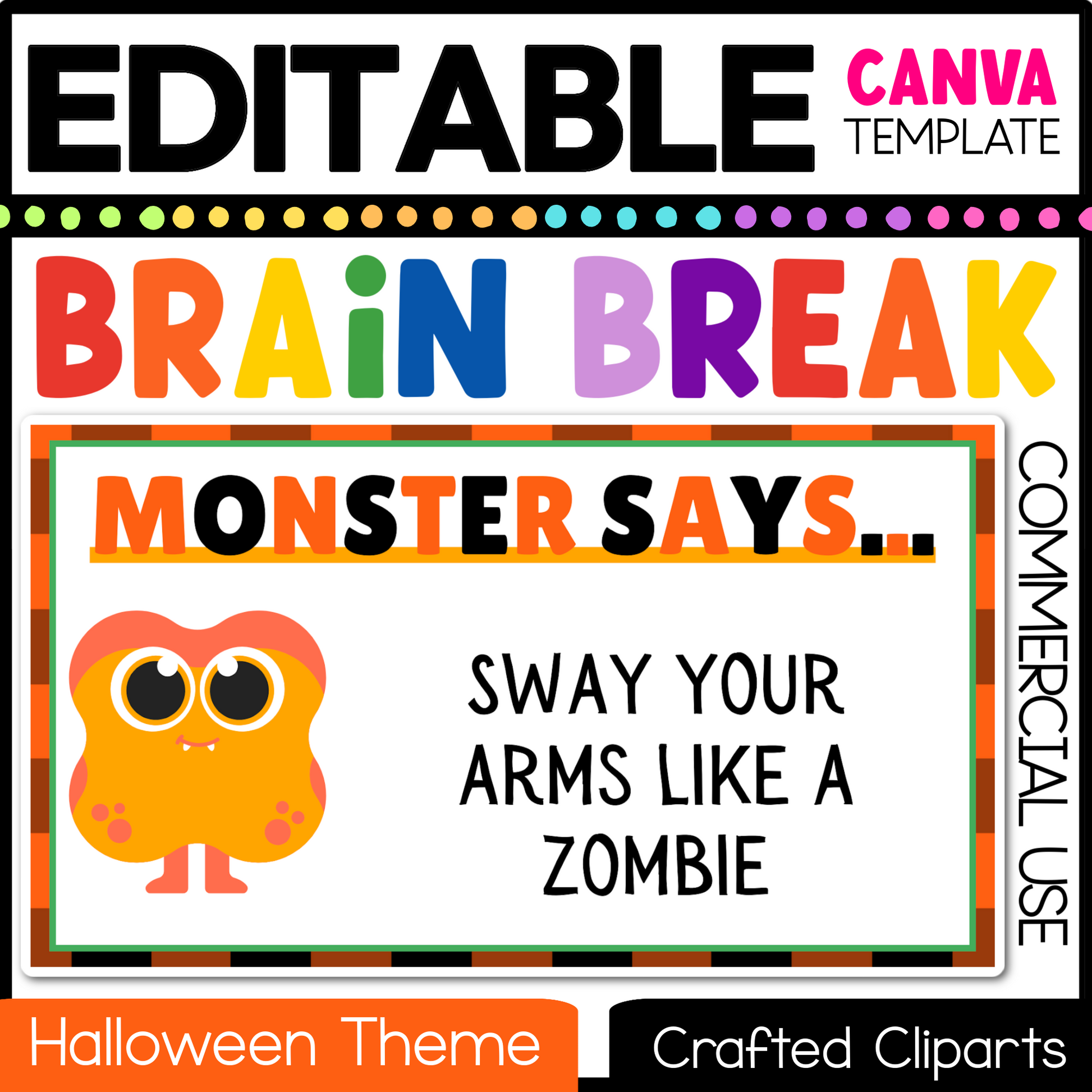 Editable Halloween Monster Says Virtual Brain Break Game Canva Template Slides