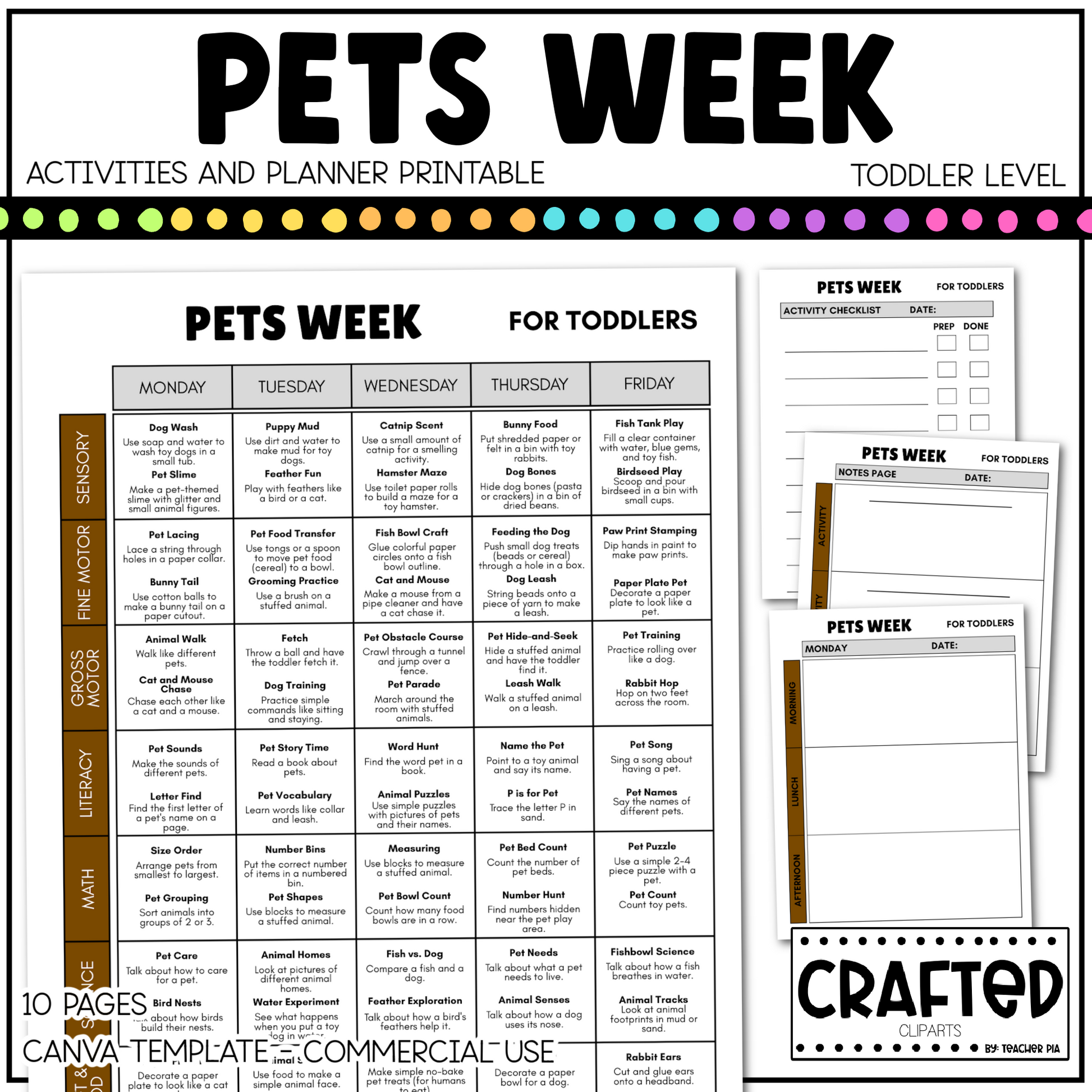 Editable Pets Week Play Activities and Planner Toddler Canva Template 2-4yo